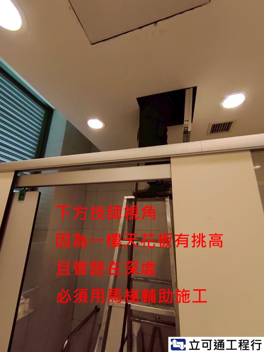 我們先在一樓天花板找到檢修孔,架好馬梯,技師就像特攻隊一樣爬上去,